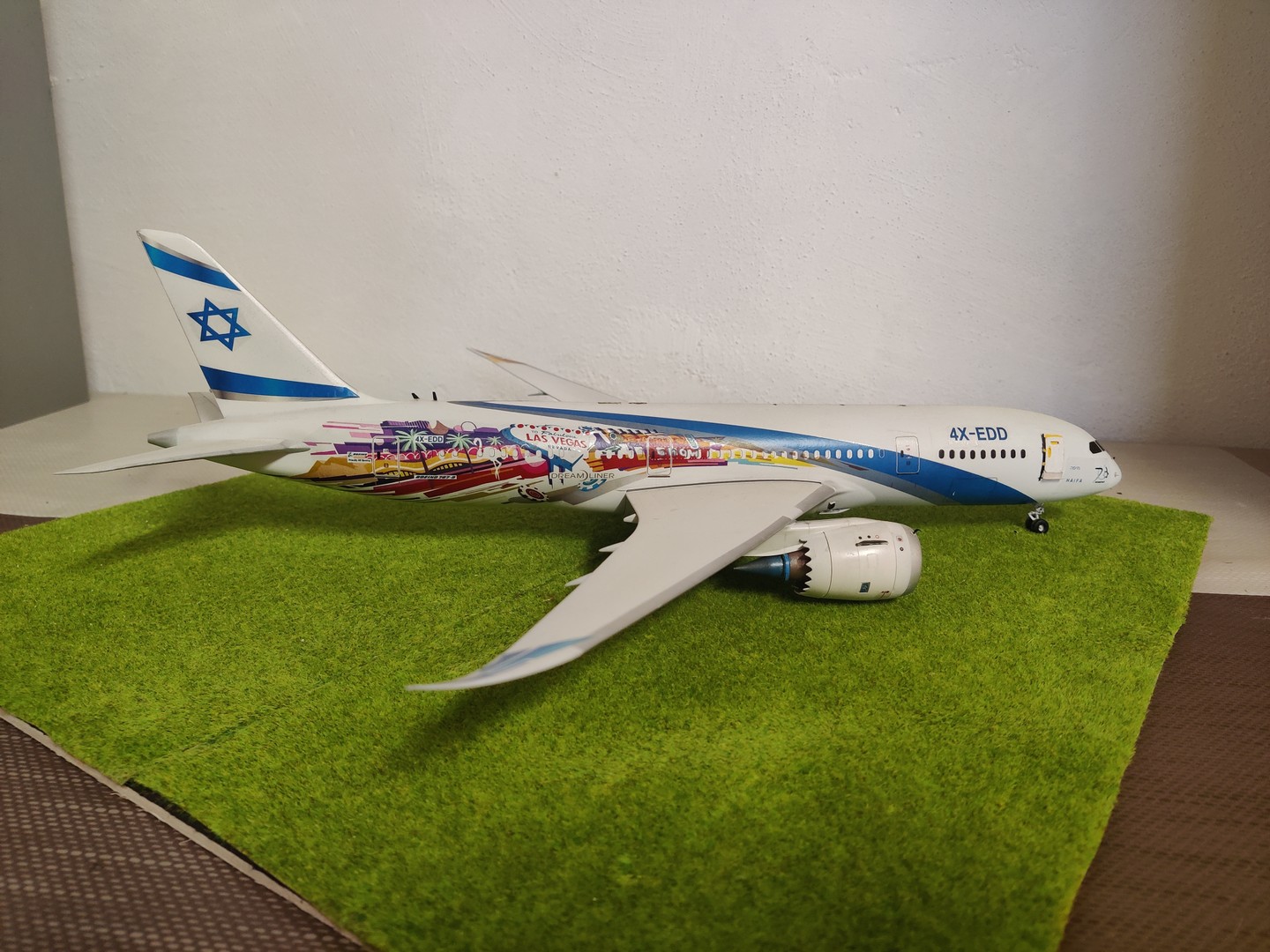 ZVEZDA BOEING 787-9 DREAMLINER AIR ISRAEL LIVERY SPECIAL. Assemblato e verniciato come in foto con basetta e prato