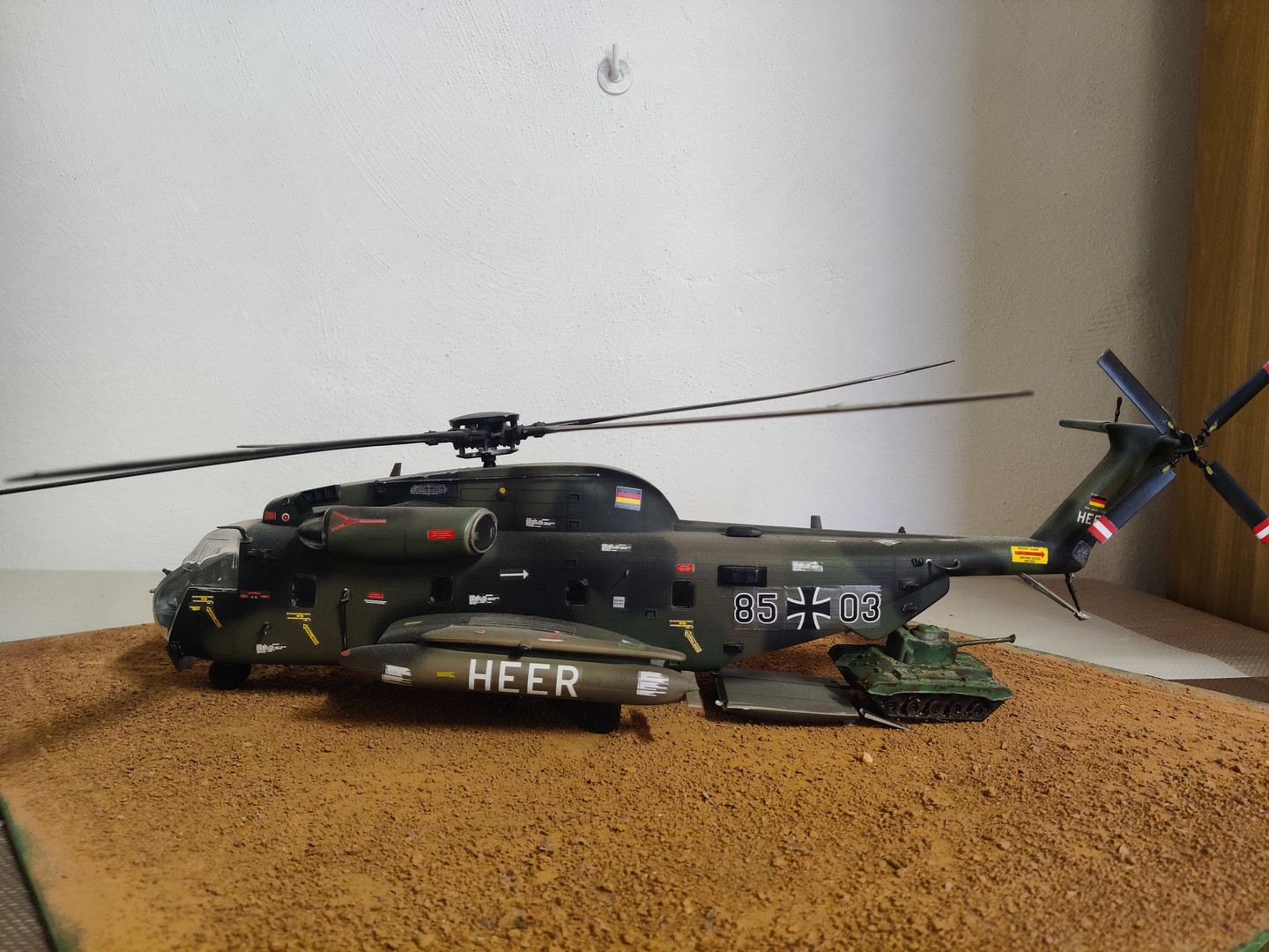 REVELL CH 53 GS 1:32 VERNICIATO ED ASSEMBLATO COME IN FOTO,CON BASETTA