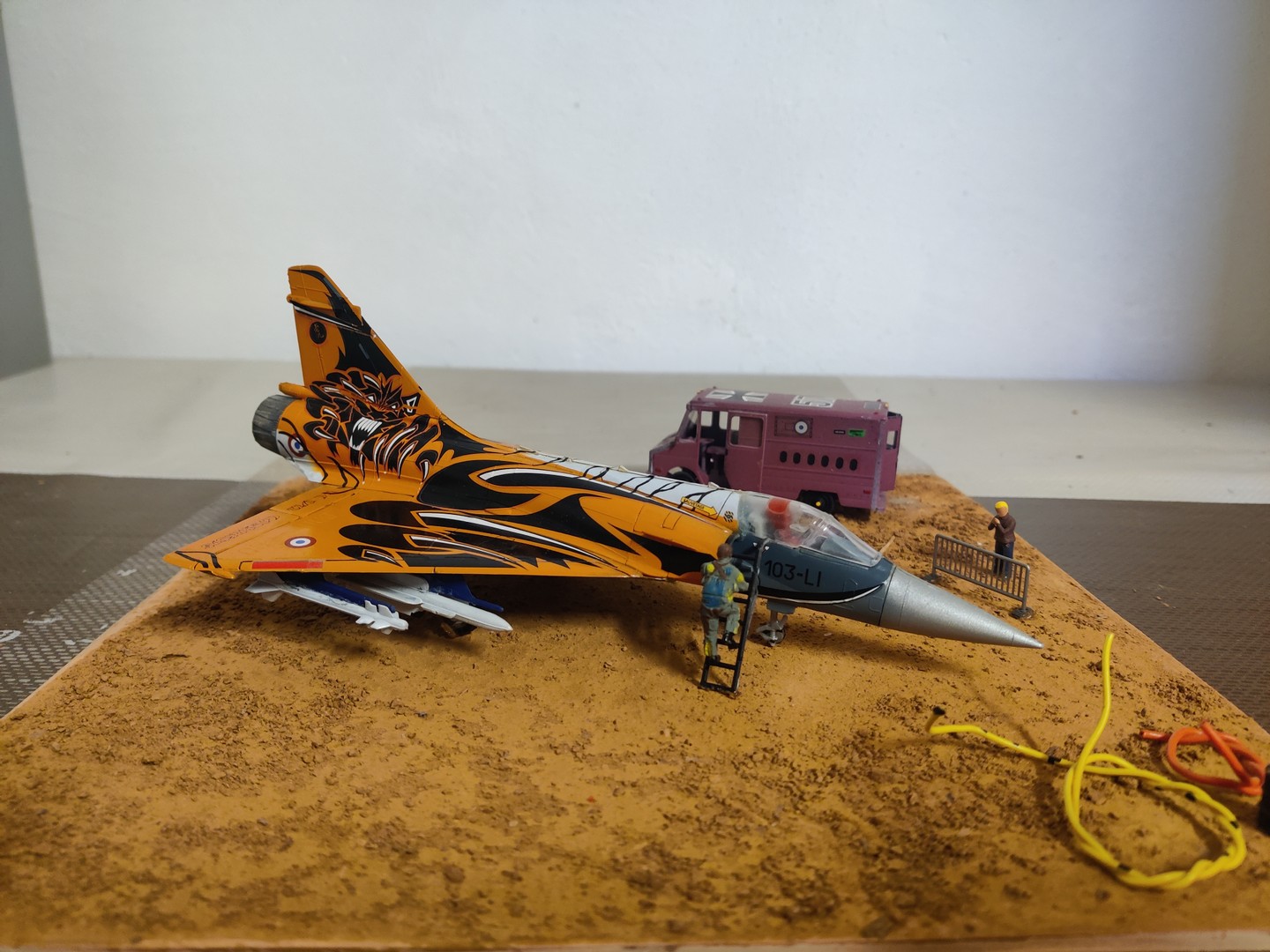 Airfix Mirage 2000 livrea tigermeet 2010 assemblato e verniciato come in foto, pronto esposizione con basetta e diorama.