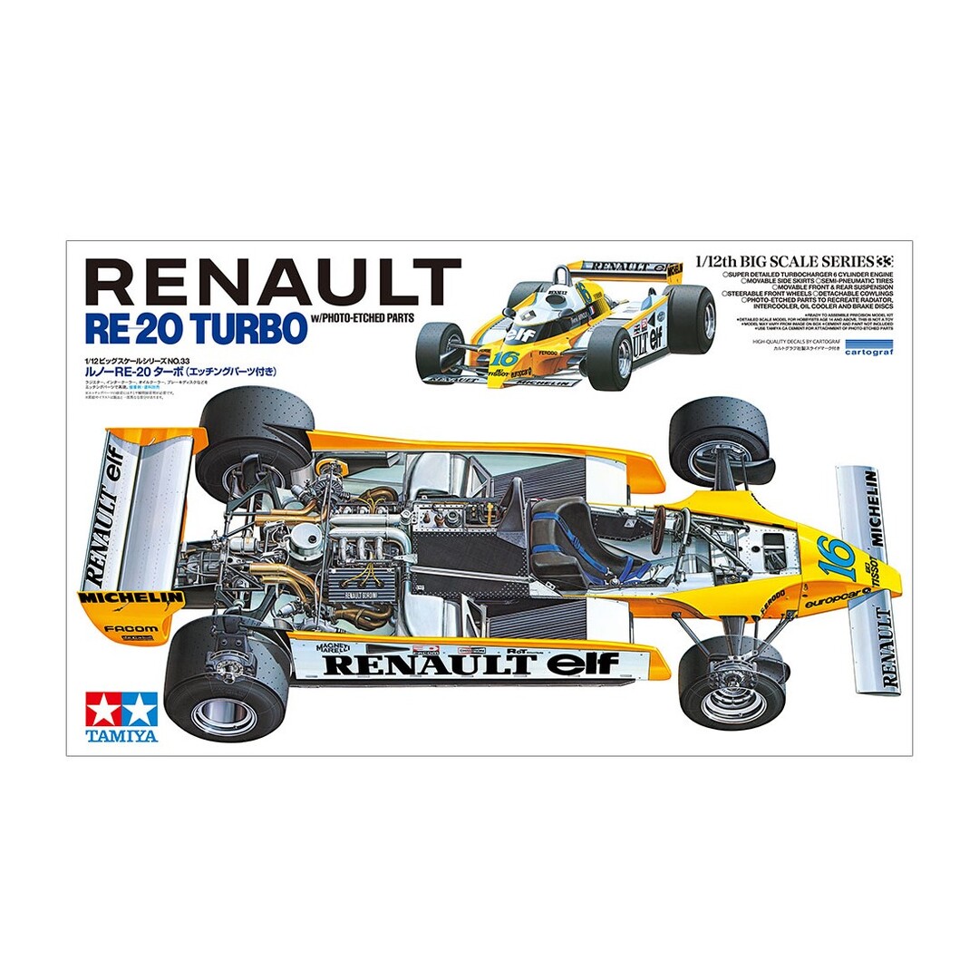 00% NEW MOULDS - Telaio, interni e motore altamente dettagliati - sportelli e cofani apribili - Super decal - Fotoinciso - Pezzi cromati - Tubi,viti e molle - Gomma morbida per paraschizzi - Sospensioni funzionanti- Pneumatici Realistici - Ruote sterzanti - Istruzioni a colori