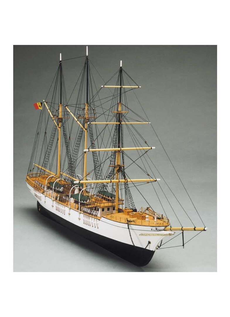 Fedele riproduzione di una nave scuola della Marina Tedesca. Il kit comprende le ordinate tagliate a laser, tondini, accessori in metallo fuso, particolari in legno, canapa, bandiere, disegni dettagliati in varie tavole e istruzioni per il montaggio.
